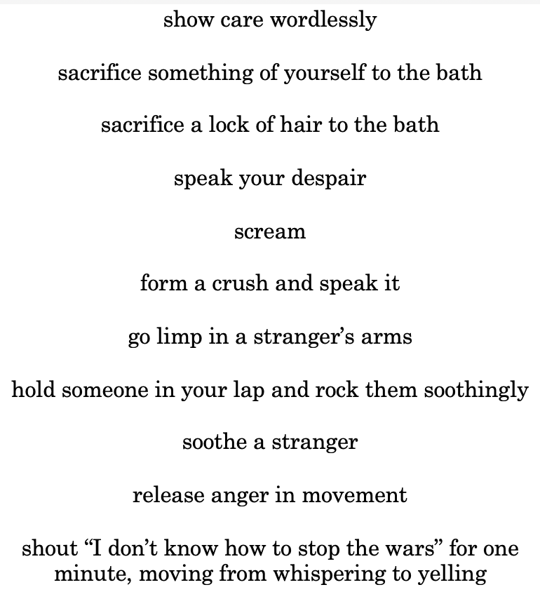 elements of encounter: light, truth, chants, tears, improvisational propaganda